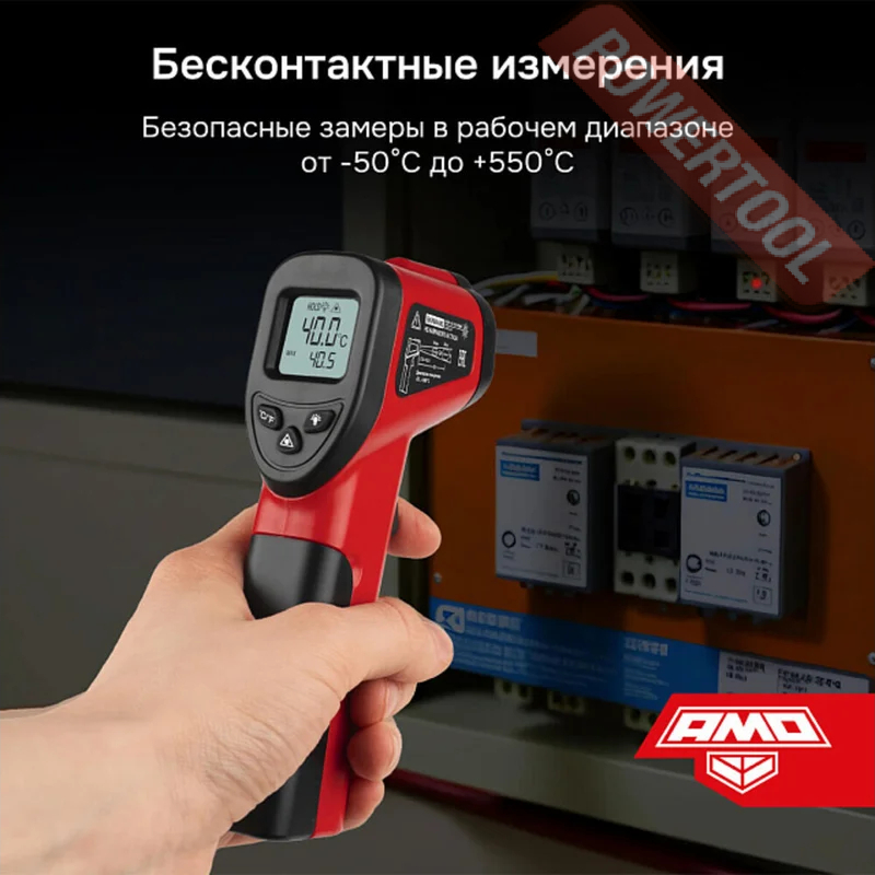 Пирометр AMO T630 – высокопроизводительный прибор карманного форм-фактора с питанием от 2 батарей типоразмера AAA, который позволяет измерять поверхностную температуру целевых объектов в дистанционном режиме. Регулируемый показатель коэффициента излучения EMS, от 0.1 до 1.0, обеспечивает более высокую точность показаний, по сравнению с младшими модификациями устройств серии T600, при определении температурных показателей изделий, изготовленных из разнотипных материалов. Расширенный измерительный диапазон инструмента, от –50 до +550 градусов С, при разрешении в 0,1 градуса С и погрешности, не превышающей 2 процента, позволяет использовать его для решения широкого круга технических, диагностических и прикладных задач, в том числе в промышленных отраслях и энергетике.