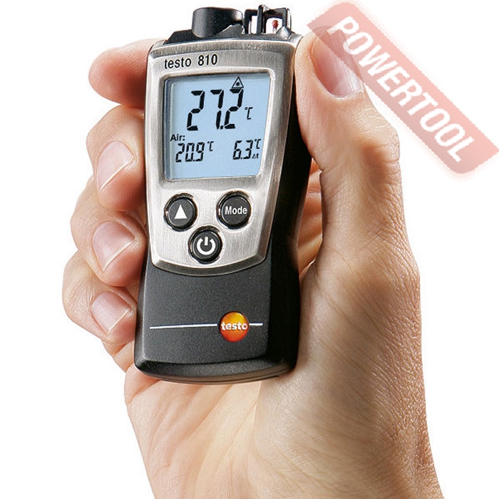 - Инфракрасный термометр testo 810 обеспечивает одновременное изменение температуры воздуха и бесконтактное измерение температуры поверхности