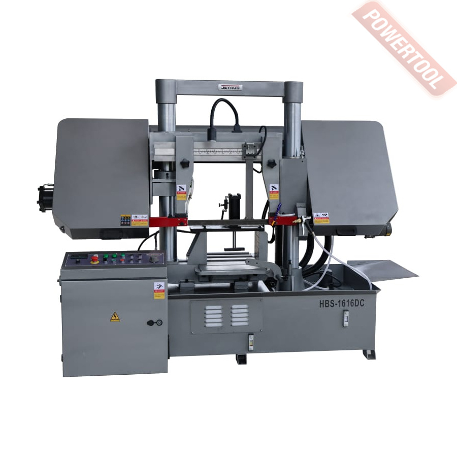 Полуавтоматический ленточнопильный станок по металлу JET HBS-1616DC с прижимом для пакетной резки, диаметром пиления до 400 мм и шириной ленточного полотна 41 мм, предназначен для промышленного пиления труб профилей и заготовок сплошного пиления из черных и цветных металлов и нержавеющих сталей.