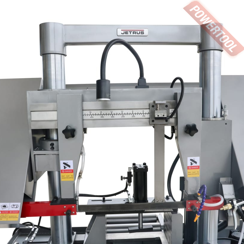 Станок оснащен гидравлической системой подъема и опускания пильной рамы с плавной регулировкой скорости подачи с пульта оператора для выбора оптимального режима резания. По окончании пиления, концевой выключатель останавливает движение ленточного полотна, пильная рама поднимается в исходное положение для осуществления циклических операций.