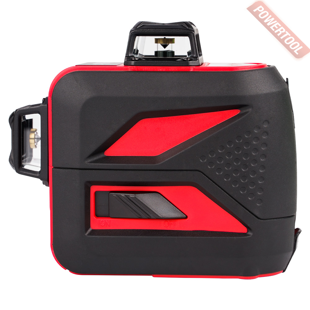 - Построение наклонных плоскостей лазерным уровнем производится при заблокированном компенсаторе. Эта особенность пригодится, например, при постройке скатной крыши или лестницы. Блокировка компенсатора включается ползунком на боковой грани прибора. При этом, плоскости также отображаются на 360 градусов каждая и доступно отключение неиспользуемых в данный момент линий.