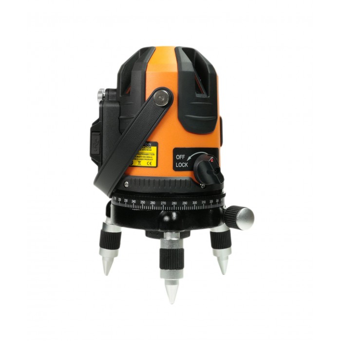 - Построение лазерных линий. Лазерный нивелир строит четыре вертикальные и одну горизонтальную плоскость с развёрткой 110 градусов. Благодаря поворотной конструкции, горизонтальному лимбу и двум точным винтам наводки лазерный уровень позволяет поворачивать лазер на 360 градусов по горизонтали, исключая необходимость перестановки прибора. Устройство может охватить все стены помещения с одной позиции.