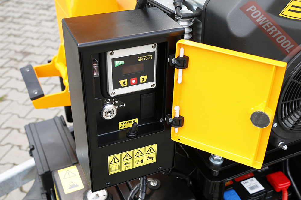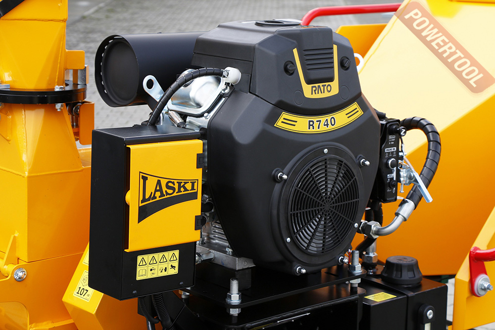 Прицепной коммунальный измельчитель веток, мах диаметр веток 100 мм, рабочий орган дисковая фреза имеет 2 режущих ножа и 2 контр-ножа, 2 подающих валика гидростатического привода подачи, производительность 3-8 куб.м/час, система No-Stress регулирует автоматическую загрузку, защищает двигатель, предотвращает заклинивание и состоит из двух подающих зависимых роликов с гидравлическим приводом, автоматическая скорость подачи от 12 до 35 м/мин, размер отверстия подачи материала 180х140 мм, вращающийся на 300 градусов желоб выброса с регулируемым отражателем, 4-тактный бензиновый двигатель Rato R740D объемом 740 куб.см и мощностью 25 л.с., электростартер, топливный бак 16 л, расход топлива 6,4 л/ч, емкость картера 1,9 л, размеры ДхШхВ 3653х1595х2080 мм, одноосное шасси со стояночным тормозом, счетчик моточасов, главный выключатель, вес 645 кг.