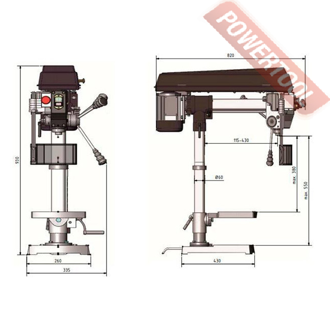 Радиальный сверлильный станок по металлу OPTIMUM OPTIdrill RB 6T с большим вылетом шпинделя предназначен для обработки дерева, пластика, алюминия.