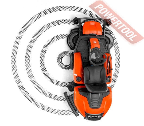 - Уникальная шарнирная система рулевого управления. Уникальная шарнирная система рулевого управления обеспечивает поворот задней пары колес. Это гарантирует превосходную маневренность и минимальный радиус поворота. Удобное размещение оператора. Райдер одинаково безопасно, устойчиво и эффективно работает и на ровных участках, и на склонах. Низкое расположение центра тяжести райдера создает превосходное сцепление с поверхностью, а также обеспечивает оператору комфортное ощущение во время работы.