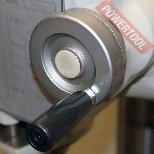 - Специальная шкала опускания шпинделя позволяет точно соблюдать размер глубины сверления несквозных отверстий.