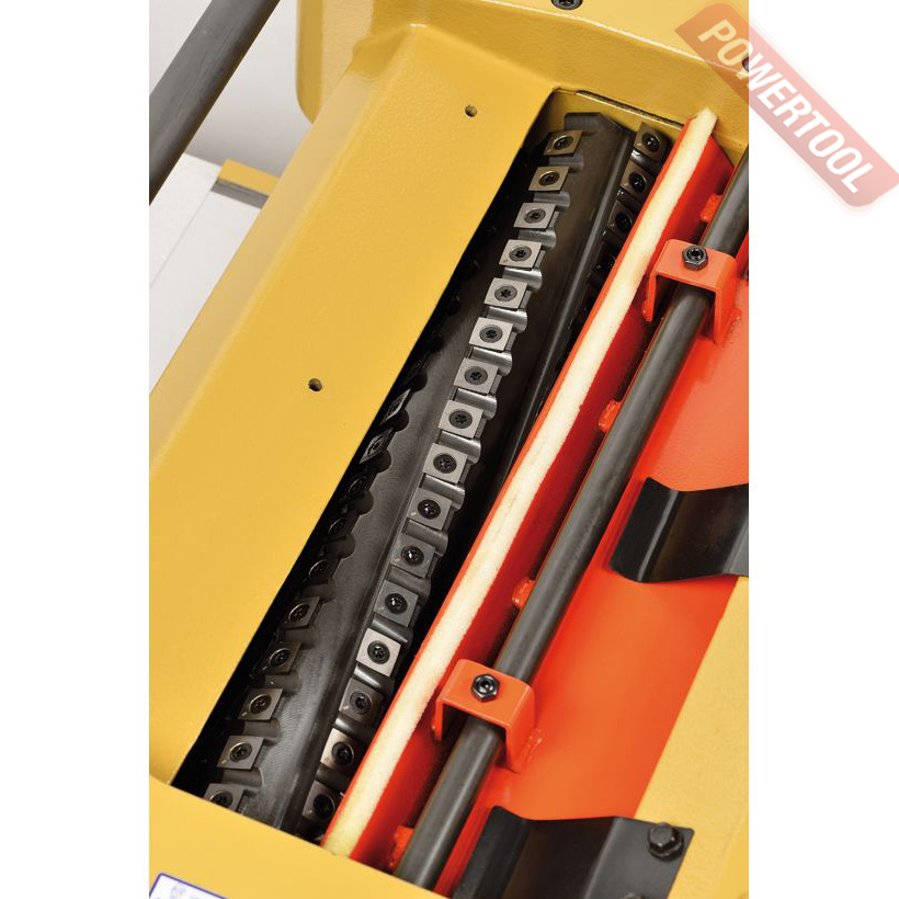 Рейсмусовый станок с сегментированным валом helical (кукуруза) POWERMATIC 15 HH 220V - мощный профессиональный рейсмусовый станок с шириной строгания 380 мм, штатно оборудованный сегментированным ножевым валом helical. Его рабочая часть – твердосплавные четырехсторонние лезвия с радиусной кромкой. Они расположены спирально в несколько рядов, благодаря чему входят в заготовку последовательно. Это снижает вибрацию, шум и способствует более чистому строганию без сколов на сучках и в местах обратного направления волокон. Немаловажно и то, что отходящая стружка мельче обычной, лучше удаляется пылеотсосом и занимает меньше места в накопителях. По мере износа ножи переворачивают (до трех раз) и лишь потом заменяют; никаких регулировок при этом не требуется.