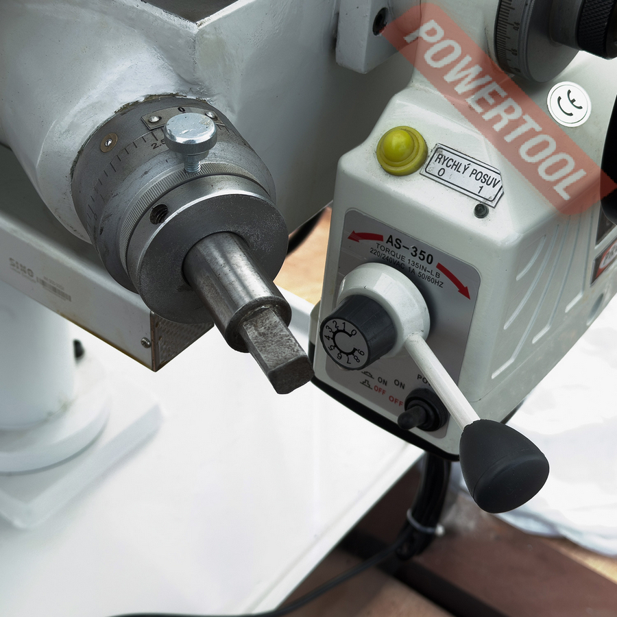 - Рукоять опускания шпинделя имеет пластиковый наконечник, который предотвращает соскальзывание руки во время работы.