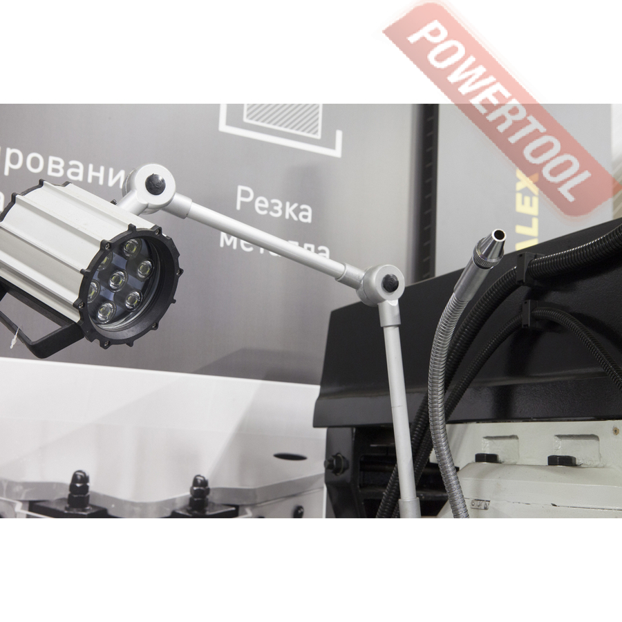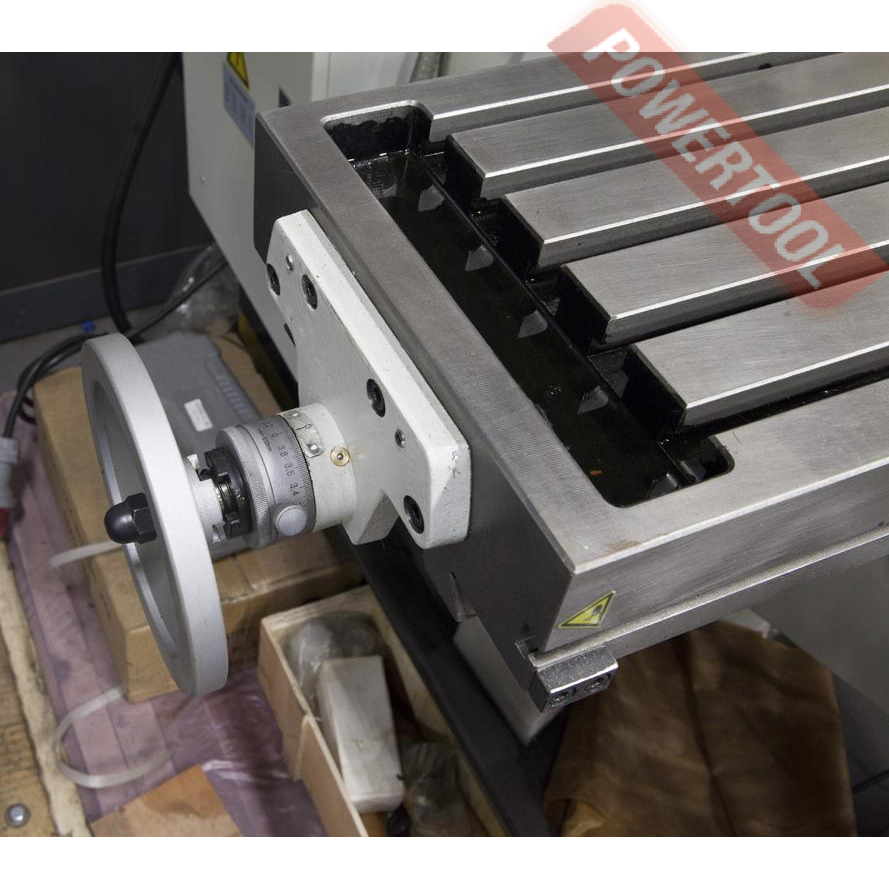 Фрезерный станок по металлу широкоуниверсальный, мощность 4400 Вт, 380 В, конус вертикального/горизонтального шпинделя ISO-40/ISO-40, max диаметр концевой фрезы 25 мм, max диаметр торцевой фрезы 100 мм, max диаметр сверления 30 мм, частота вращения вертикального/горизонтального шпинделя 90-2000/40-1300 об/мин, количество передач вертикального/горизонтального шпинделя 8/9, ход шпинделя 120 мм, наклон головки +/-45 градусов, автоматическая подача пиноли 0,08/0,15/0,25 мм/об, вертикальный шпиндель-колонна 685 мм, вертикальный шпиндель-стол 400 мм, горизонтальный шпиндель-стол 370 мм, размер стола ДхШ 280х1270 мм, ход стола по оси XхYхZ 750х230х360 мм, автоподача стола по оси X, угол поворота стола +/-45 градусов, 4 Т-образных паза 14 мм, max нагрузка на стол 125 кг, габариты ДхШхВ 1580х1450х2100 мм, вес 1300 кг, в комплекте патрон сверлильный B16 3-16 мм, патрон цанговый, набор цанг 4-16 мм 8 шт, оправка ISO-40/B16, оправка горизонтального шпинделя, зажимная тяга 2 шт, лампа местного освещения, набор инструментов, система СОЖ, УЦИ, тиски 160 мм.