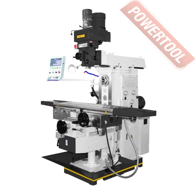 Фрезерный станок по металлу широкоуниверсальный, мощность 10500 Вт, 380 В, конус вертикального/горизонтального шпинделя ISO-40/ISO-50, частота вращения вертикального/горизонтального шпинделя 65-4660/60-1800 об/мин, количество передач вертикального/горизонтального шпинделя 16/12, ход шпинделя 127 мм, автоматическая подача пиноли 0,04/0,08/0,15 мм/об, вертикальный шпиндель-стол 630 мм, горизонтальный шпиндель-стол 450 мм, размер стола ДхШ 360х1600 мм, ход стола по оси XхYхZ 1300х320х450 мм, автоподача стола по оси XхYхZ, угол поворота стола +/-45 градусов, 3 Т-образных паза 18 мм, вес 2850 кг, в комплекте патрон цанговый ER32, набор цанг, оправка горизонтального шпинделя, зажимная тяга 2 шт, лампа местного освещения, набор инструментов, система СОЖ 55 л, УЦИ, тиски 160 мм.