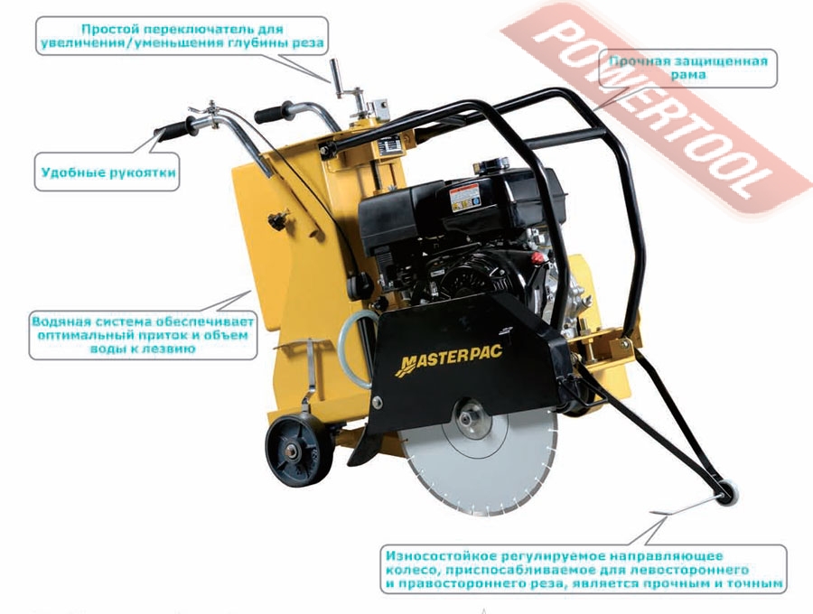 Швонарезчик бензиновый MASTERPAC PMF18 мощное, долговечное и надежное оборудование, которое применяются для резки асфальта и асфальтной кромки, тротуарной и гранитной плитки, вырезании сегментов в конструкциях из бетона и железобетона, разборке перекрытий, прокладки инженерных коммуникаций.