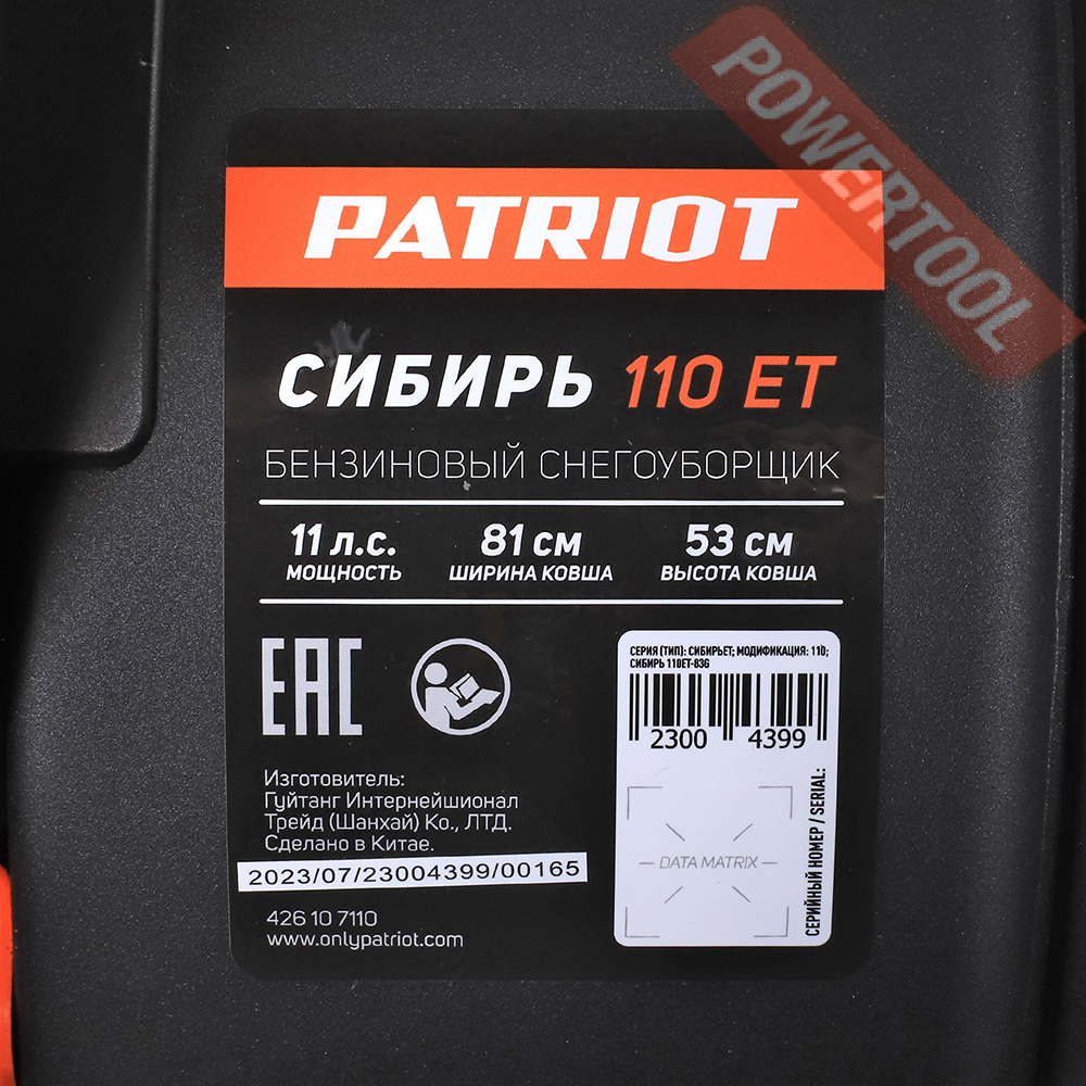 Снегоуборщик гусеничный самоходный PATRIOT Сибирь 110 ET арт.426107110