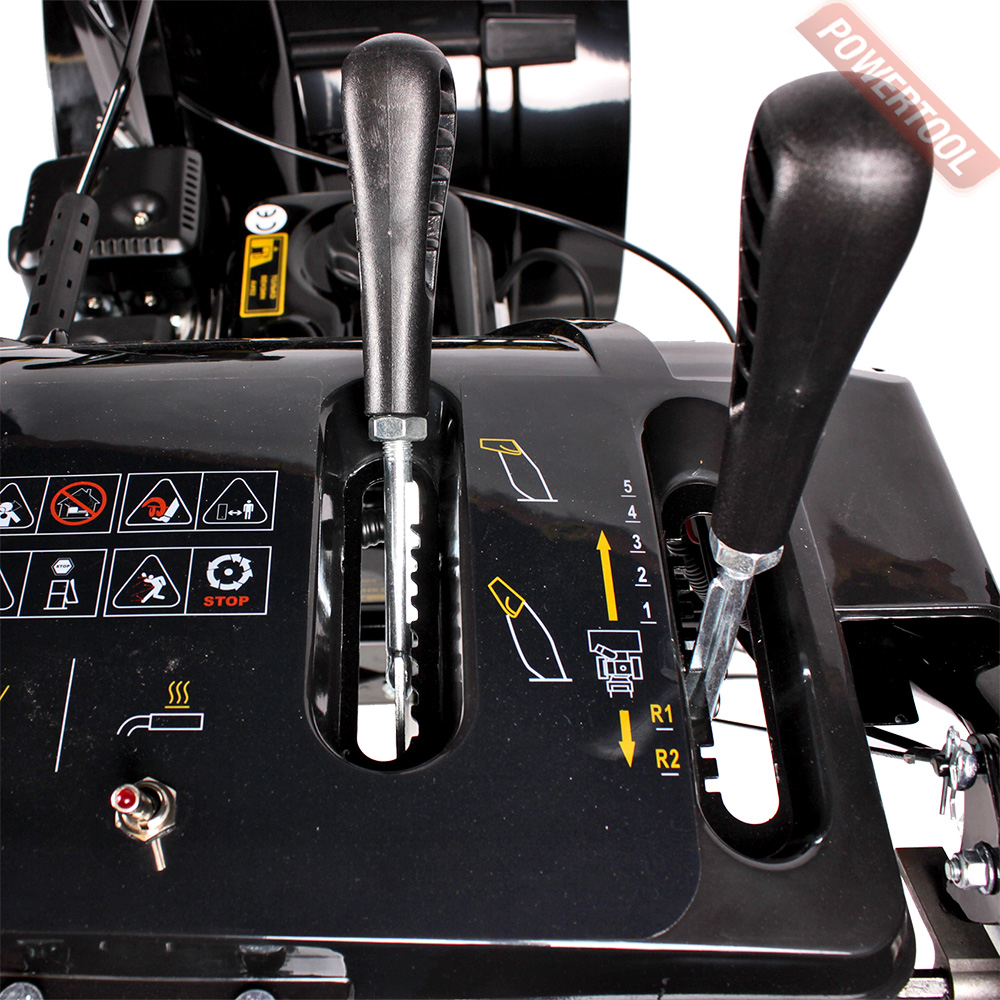 • Механический привод: 5 скоростей вперед и 2 скорости назад. В зависимости от количества выпавшего снега трансмиссия с фрикционным диском позволяет выбрать оптимальную скорость для работы.