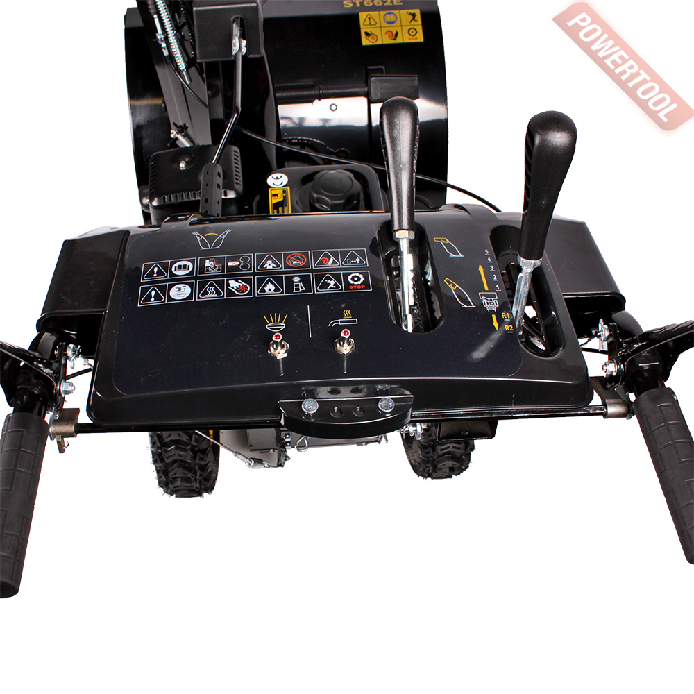• Подогрев рукояток. Для комфортной работы при низких температурах снегоуборщик снабжен подогревом рукояток управления. Кнопка включение и выключение размещена на панели и защищена от попадания снега и влаги.