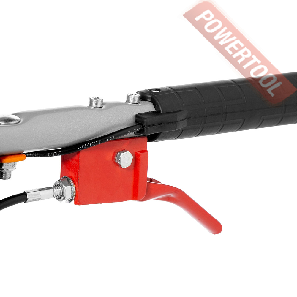 • Взаимная блокировка рукояток. При зажатии обеих рукояток происходит их взаимная блокировка. Это позволяет управлять снегоуборщиком даже одной рукой, в том числе изменять направление выброса снега без остановки работы.
