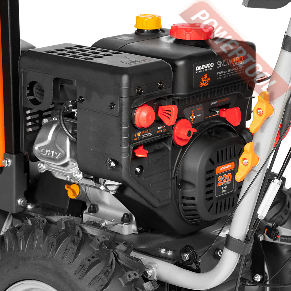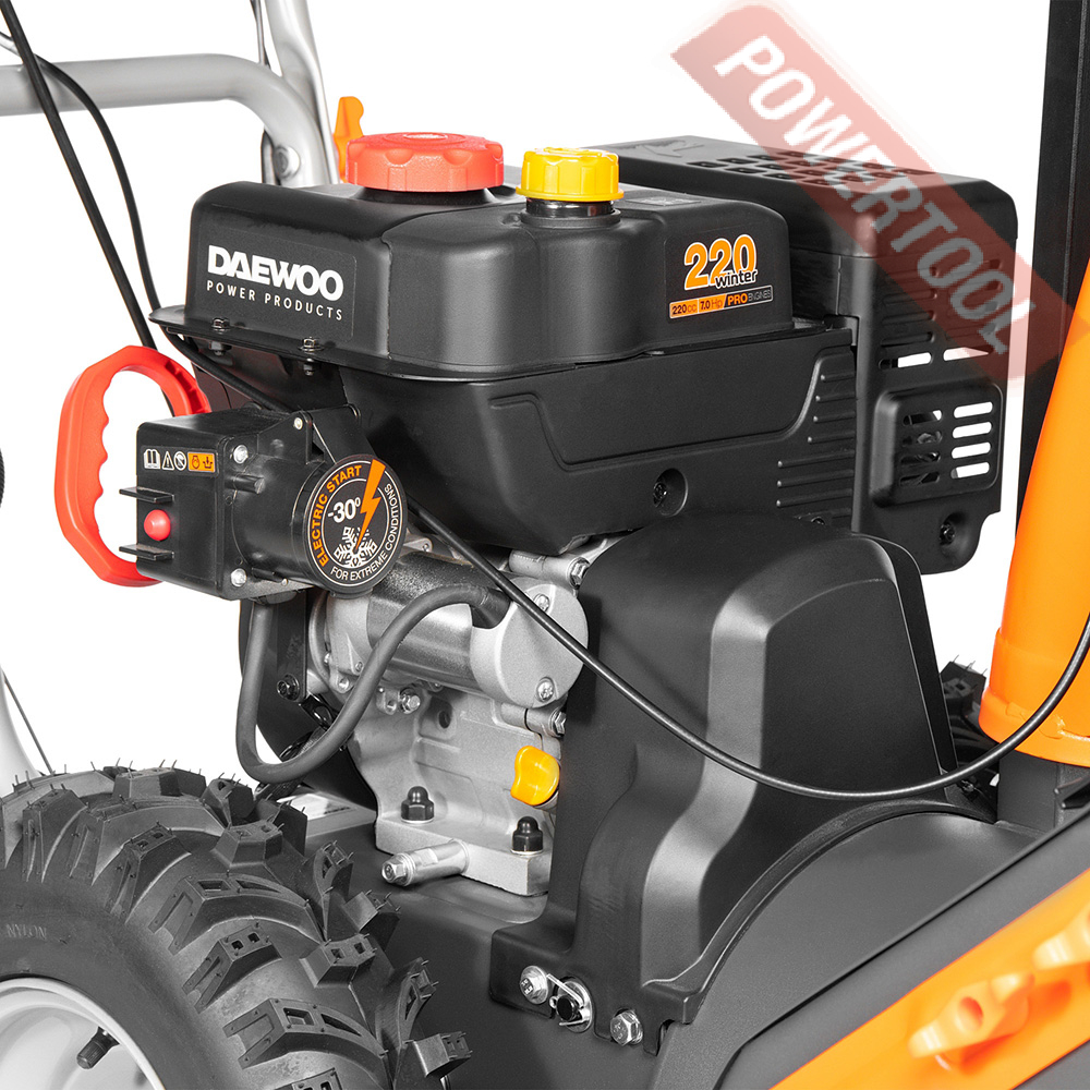 - Двигатель DAEWOO зимней серии 220 Winter. Уверенный запуск при отрицательных температурах. Повышенный моторный ресурс. Увеличенный глушитель и сниженный уровень шума. Вместительный топливный бак на 3.2 литра.