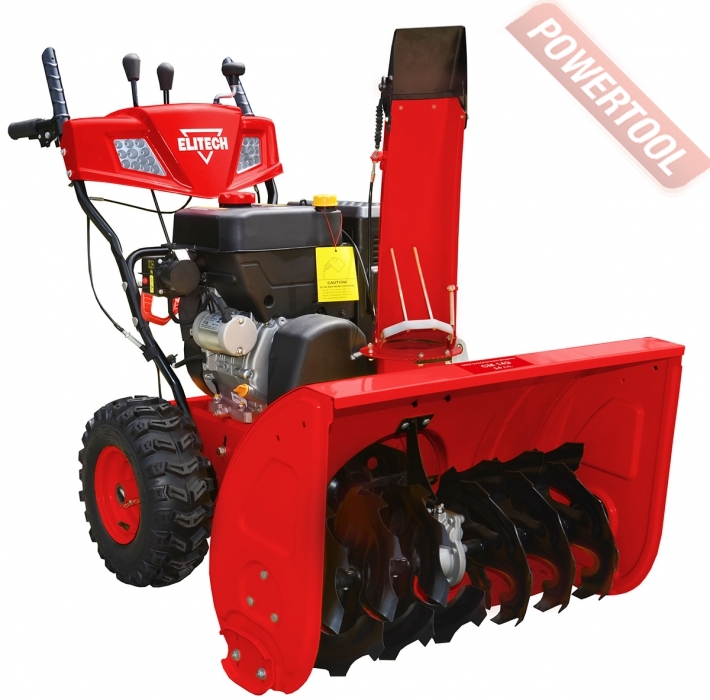 Снегоуборщик колесный самоходный ELITECH СМ 7Э подходит для уборки придомовой территории, расчистки дорог, подъездных путей, территорий вокруг склада или офиса. Предназначен для уборки средних по площади территорий. Снегоотбрасыватель имеет двухступенчатую систему выброса снега: снег, попавший в ковш измельчается и подаётся зубчатым шнеком на крыльчатку с лопастями, которые вращаясь выбрасывают измельченный снег через патрубок в заданном оператором направлении. Наличие двух ступеней, зубчатого шнека и высокоскоростной крыльчатки,позволяет разрыхлять даже слежавшийся снег.