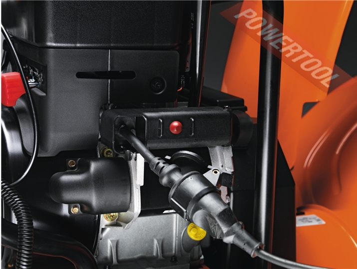 - Электрический стартер. Подключите к источнику питания и запустите двигатель нажатием кнопки. Теплый двигатель легко заводится пусковой рукояткой.
