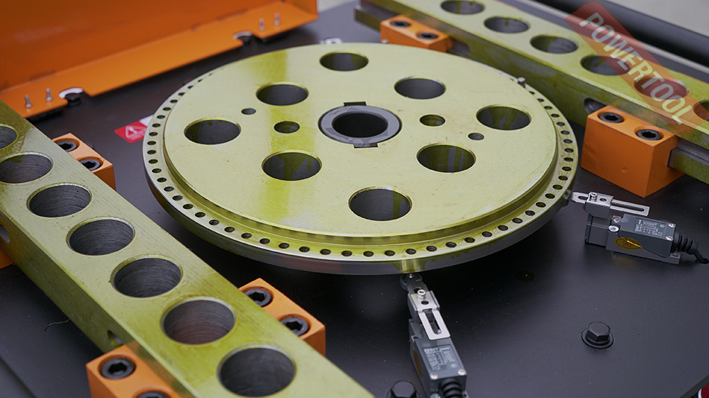 - Настройка угла гибки осуществляется с помощью штифтов, устанавливаемых на планшайбу. Шаг изменения угла равен 5 градусам.