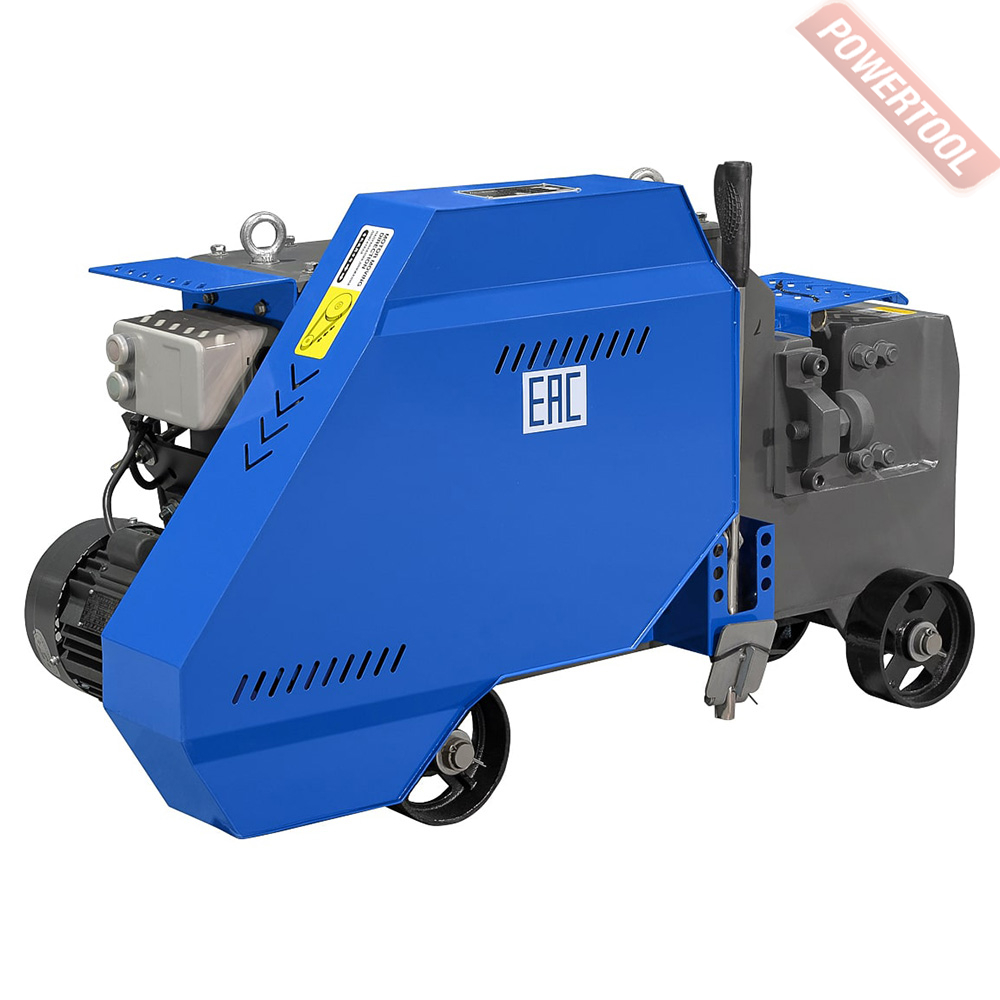 Станок для резки арматуры электрический, 3 кВт, 380 В, max диаметр резки 36 мм, частота хода ножей 32 реза/мин, вес 380 кг, габариты ДхШхВ 1200х400х680 мм, колеса, комплект ножей.