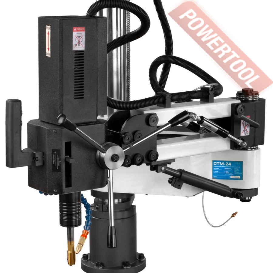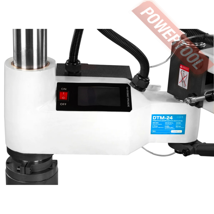 Сверлильно-резьбонарезной манипулятор HEDEN DTM-24 способен высверливать отверстие диаметром 3-16 мм и нарезать резьбу до М24. Два назначения повышают эффективность производства и сокращают трудовые затраты. Стабильный и качественный результат на различных материалах: сталь, железо, медь, алюминий, пластик. Легкое перемещение обеспечивает двойная консольная головка, вращающаяся на 360 градусов с вертикальным и боковым отводом. Предусмотрена автоматическая система подачи СОЖ, которая препятствует износу инструмента.