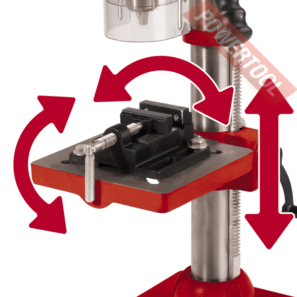 Сверлильный станок по металлу EINHELL TC-BD 630 обеспечивает точное сверление, а также, благодаря двенадцатиступенчатой регулировке частоты вращения шпинделя, обеспечивает необходимую скорость для каждого материала. Прочный ключевой патрон с рабочим диаметром 1,5-16 мм подходит для всех стандартных размеров сверл. Возможность установки сверл в конус Морзе MK2 придает больше гибкости в работе. Крупные рельефные рукояти ворота не выскальзывают из рук при работе, что способствует равномерной и аккуратной подаче сверла к заготовке, а регулируемый ограничитель сверления обеспечивает получение отверстий заданной глубины. Возможность регулировки стола по высоте и наклону расширяет сферу применения модели. Защита от повторного пуска реализована переключателем ВКЛ/ВЫКЛ с реле нулевого напряжения. В комплект поставки входят тиски.