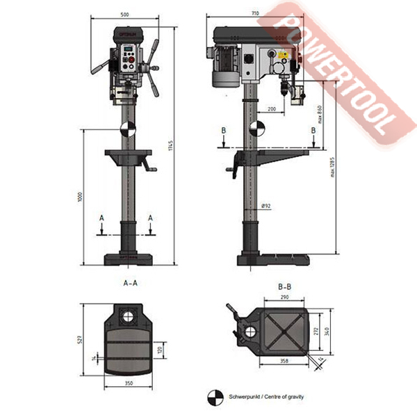 Сверлильный станок по металлу OPTIMUM OPTIdrill DH 28BV с бесступенчатой механической коробкой скоростей Berges.