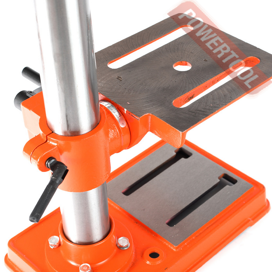 Чугунный сверлильный стол размером 200х200 мм, регулируемый по высоте, позволяет работать с различными заготовками. Ударопрочный корпус значительно продлевает рабочий ресурс.
