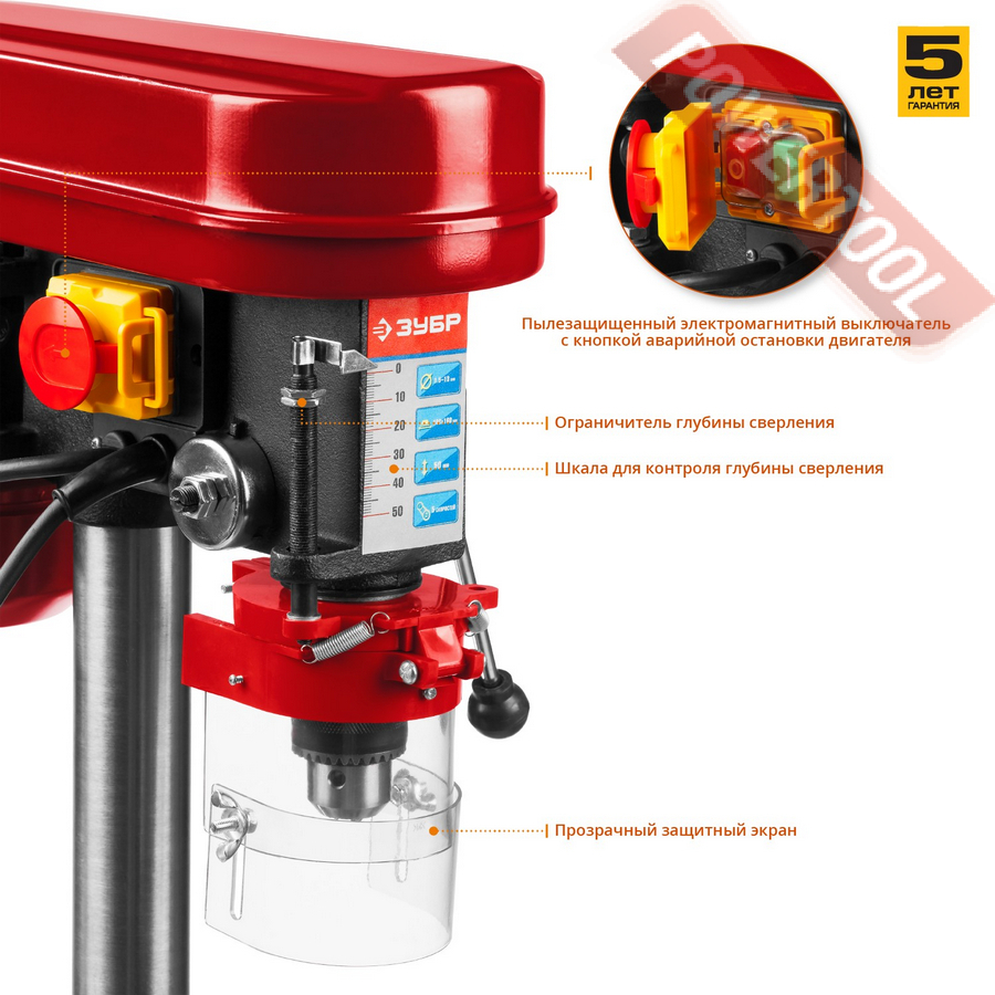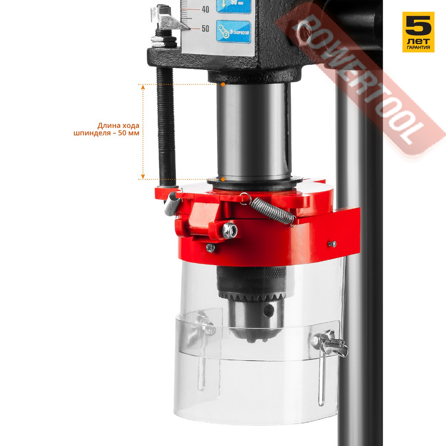 - Прозрачный кожух для защиты оператора от стружки при сверлении.