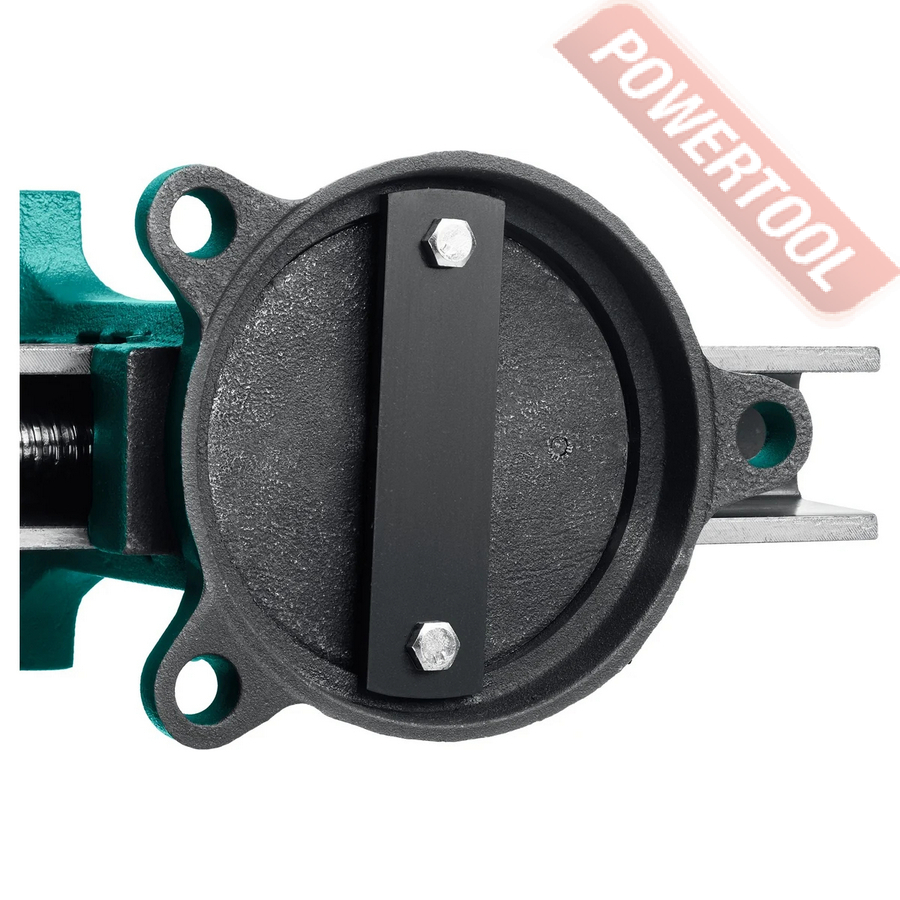 Тиски слесарные поворотные, ширина губок 100 мм, рабочий ход 100 мм, глубина зева 61 мм, наковальня, усилие зажима 4000 кг, функция поворота 360 градусов, размер ДхШхВ 310х132х148 мм, вес 7,3 кг.