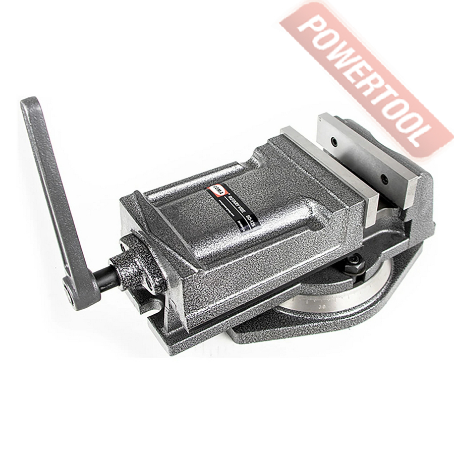 Тиски станочные поворотные, ширина губок 125 мм, рабочий ход 95 мм, высота губок 40 мм, функция поворота 360 градусов, размер ДхШхВ 390х230х170 мм, вес 14 кг.