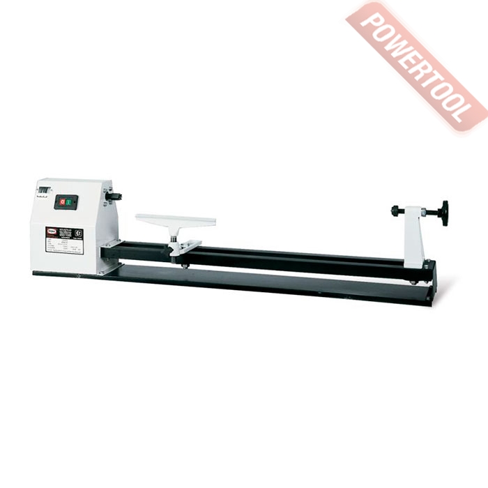 Токарный станок по дереву, 350 Вт, 220 В, 4 скорости, 810-2480 об/мин, диаметр обточки над станиной 350 мм, длина заготовки 1000 мм, вес 61 кг.