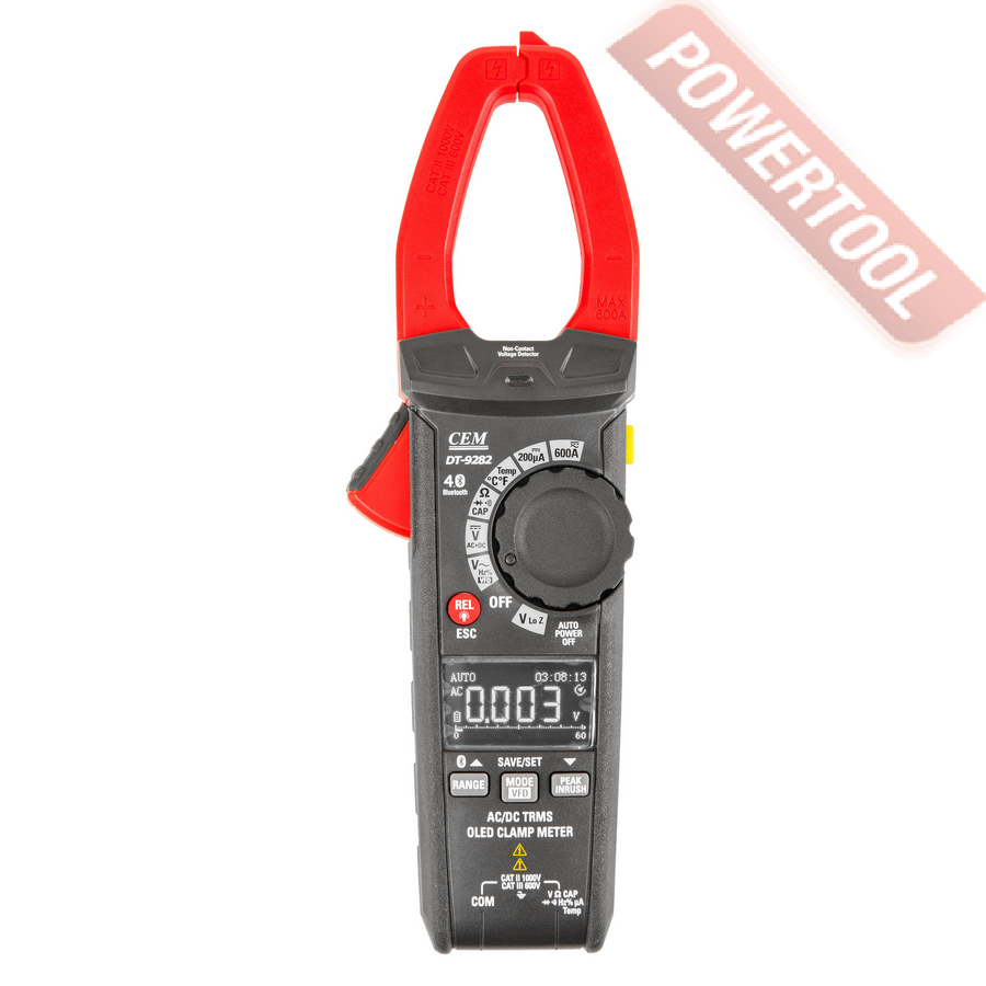В отличие от других моделей, CEM DT-9282 оснащена OLED-экраном, который обеспечивает высокую контрастность, яркость и читаемость даже при прямом солнечном свете. Поддержка Bluetooth позволяет передавать данные в мобильное приложение, где можно строить графики, управлять прибором и формировать отчеты.