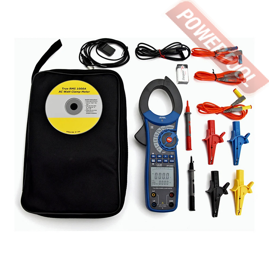 Токовые клещи с ваттметром CEM DT-3353 – промышленный прибор TrueRMS-класса, который, помимо регистрации показателей переменного напряжения, силы тока и частоты, способен отслеживать мощностные характеристики проверяемых систем и электрооборудования, как однофазного, так и трехфазного, с соединением "треугольник" или "звезда". Изделие снабжено встроенным таймером, поддерживает расширенным перечень аналитических средств и реализует функцию документирования. Модель внесена в Госреестр СИ и может использоваться для решения диагностических и инспекционных задач.