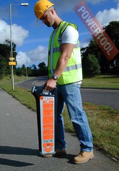 Трассоискатель или локатор. Три режима работы. Режим Р токовый диапазон (обнаружение силовых кабелей под напряжением). Pежим R радиодиапазон (обнаружение проводников, излучающих радиосигналы не более 10 м). Режим G генератор прямое подключение (Длина сигнала 300 м). Работа локатора совместно с генератором в режиме гальванической связи и режиме индукции. Рабочая глубина при режиме P -3 м, R -2 м, G -3 м. Частота 33 kHz импульсный/постоянный. Чувствительность на глубине 1м при режиме P -7mA RMS, R -10 µA RMS, G -10 µA RMS. Частота при режиме P 50-400Hz, R 15-20kHz, G 33kHz. Диапазон приема  5 процентов от глубины. Точность определения 10 процентов от глубины. Батареи не в комплекте. Тип 4 тип D (IEC type LR20). Время работы 30 часов. Вес 3 кг. Тип защиты IP65.