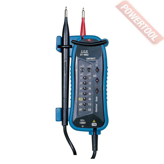 Указатель напряжения CEM DT-9902 — комбинированный измерительный прибор, предназначенный для проведения оперативных проверок и обслуживания бытовых, коммерческих и промышленных питающих электросетей. Тестер позволяет контролировать уровень напряжения в сетях переменного и постоянного тока, а также проверять целостность электрических цепей, наличие и надежность контактных соединений.