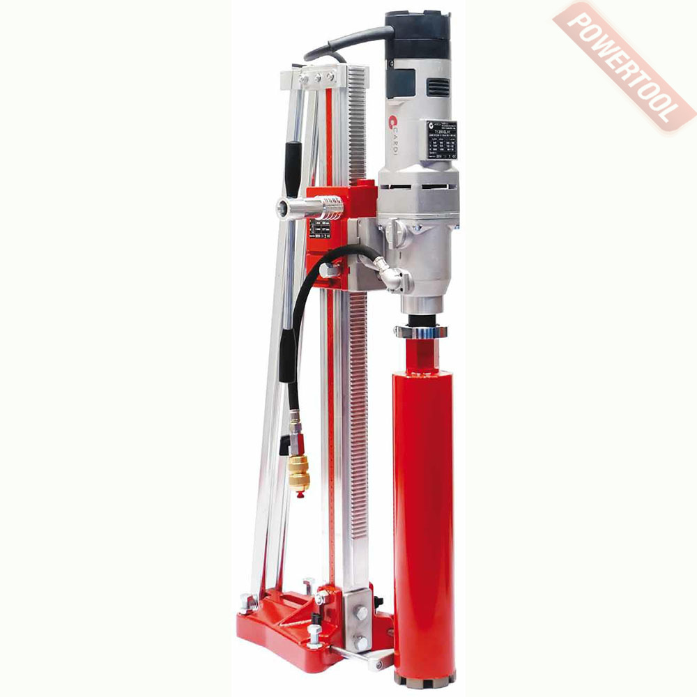 Установка алмазного бурения со стойкой CARDI 200 – уникальная установка, предназначенная для сверления отверстий с использованием воды, которая включает в себя двигатель T1 200-EL и стойку Leonardo 200.