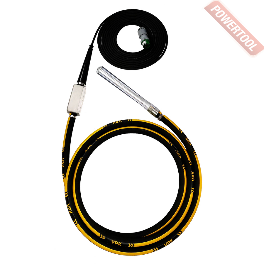 В производстве глубинных вибраторов торговой марки VPK использованы высококачественные комплектующие: испанский кабель и провод TopCable, австрийская низковольтная вилка PCE, бандажные системы Bandimex. Данный вибратор требует подключение к преобразователю частоты.