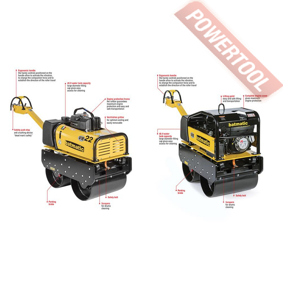 Виброкаток ручной двухвальцовый BATMATIC VR-22 H представляет собой каток с ручным приводом, тягой и вибрацией, управляемой гидравлической системой.