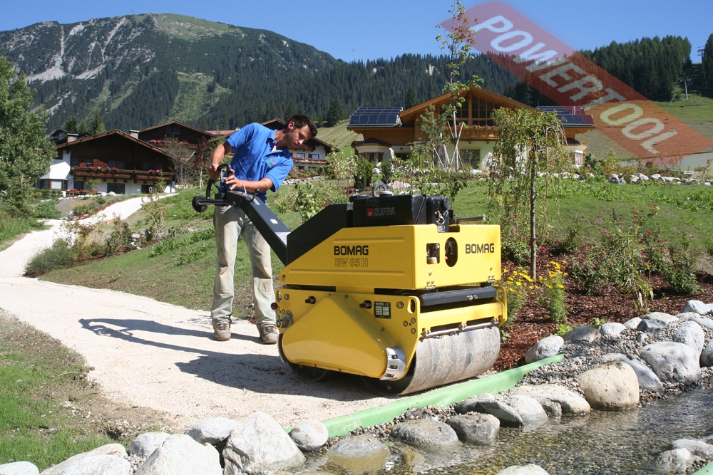 Виброкаток ручной двухвальцовый BOMAG BW 65 H E-Start предназначен для выполнения широкого спектра грунтовых и асфальтовых работ на небольших объектах: пешеходных и велосипедных дорожках, детских и спортивных площадках, при прокладывании проселочных и лесных дорог. Гидростатическая система привода и большой диаметр вальцов позволяют осуществлять уплотнение битумного покрытия.При эксплуатации ручного катка BW 65 H достигается высокое качество обрабатываемой поверхности, машина дает возможность убирать выбоины и неровности асфальтового покрытия.