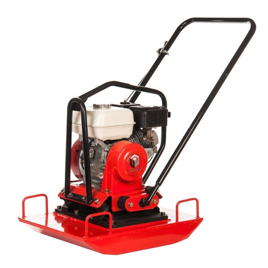 Виброплита прямого хода, вес 95 кг, плита 610х450 мм, усилие уплотнения 20 кН, механический привод, скорость перемещения 27 м/мин, бензиновый двигатель Honda GX160 мощностью 5,5 л.с., расход топлива 1,4 л/ч, топливный бак 3,1 л, емкость картера 0,6 л, защитная рама, размер 1100х460х830 мм, поставляется БЕЗ БАКА ДЛЯ ВОДЫ.
