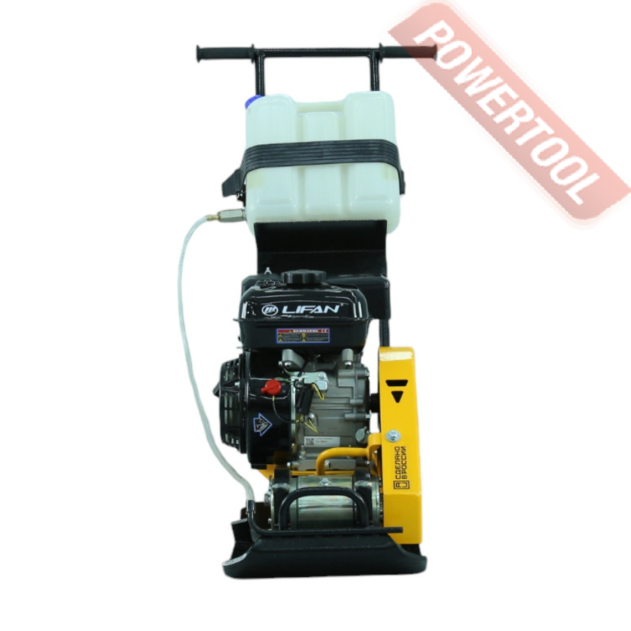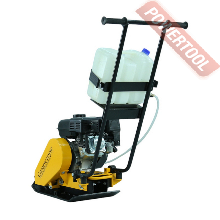 Виброплита комплектуется быстросъемными транспортными колесами (устанавливаются в специальные гнезда), наушниками, баком для воды и системой орошения.