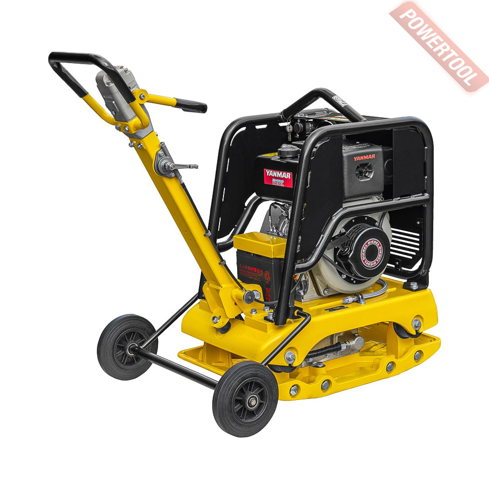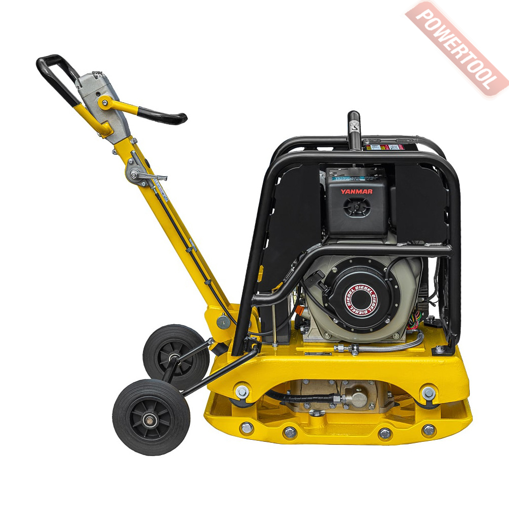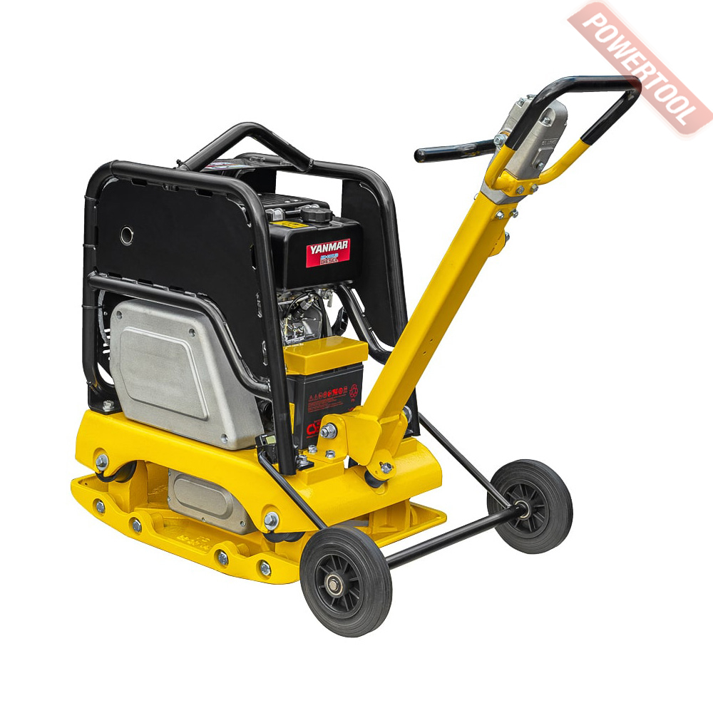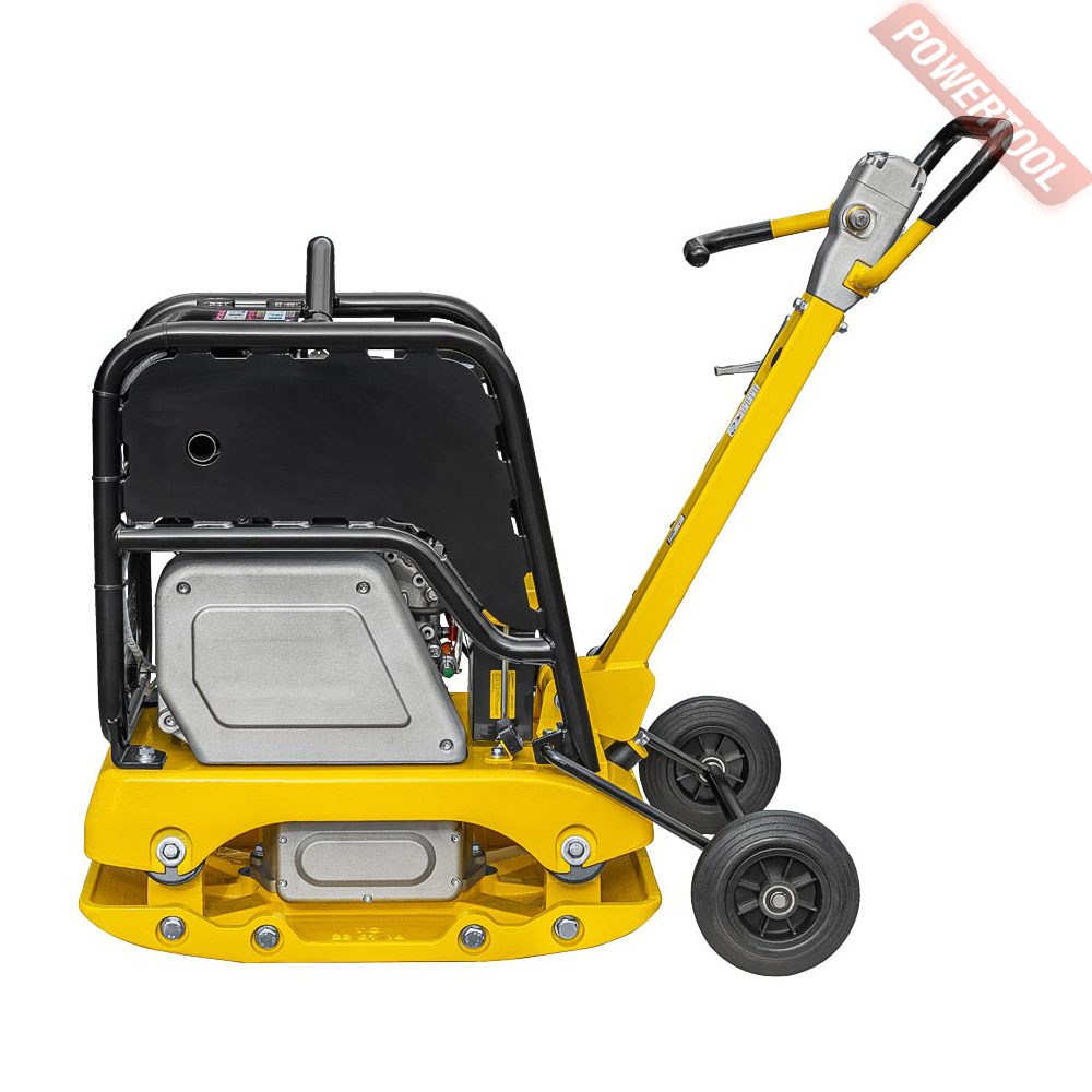 - Для удобства оператора кнопка включения/выключения реверсивного привода находится на ручке виброплиты.
