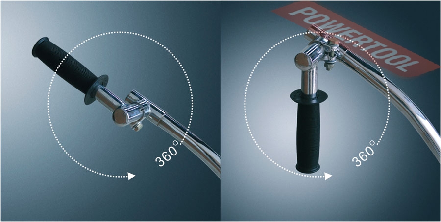 - Уникальная система рукоятки управления. Она не только складывается, но и регулируется по высоте и углу наклона, что обеспечивает максимальный комфорт в работе. Две устойчивые резиновые опоры сокращают вибрации на рукоятке.