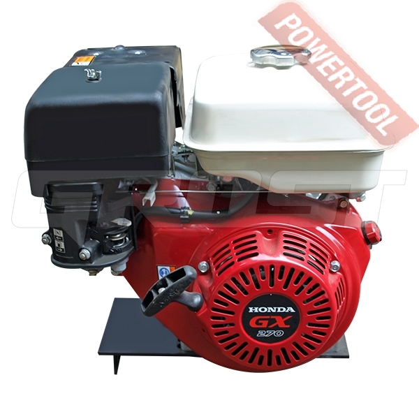 - Профессиональный бензиновый двигатель общего назначения HONDA GX 270 мощностью 8 л.с. специально разработан для длительной бесперебойной работы в особо тяжелых условиях. Двигатель является одноцилиндровым 4-х тактным с верхним расположением клапанов (OHV), имеет горизонтальный вал и воздушное охлаждение с системой принудительной циркуляцией. Материалом из которого выполнен двигатель является алюминий, поэтому он имеет выдающееся соотношение мощности к собственному весу. Имеется система защиты, которая выключает или не даёт завести двигатель при низком уровне масла. Небольшой расход топлива и соответствие современным экологическим нормам. Благодаря широкому применению двигателя, запчасти и расходные материалы возможно купить практически в любом регионе. Высокий моторесурс до 2000 моточасов.