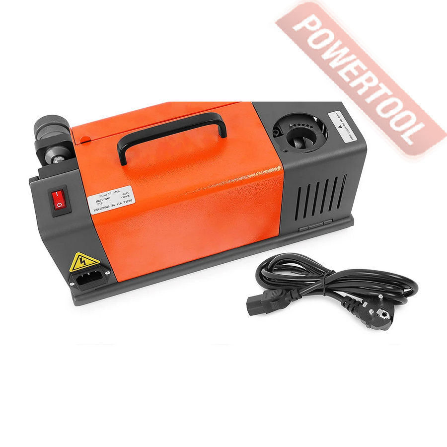 Заточной станок для заточки сверл, мощность 120 Вт, напряжение 220 В, число оборотов 4800 об/мин, диаметр затачиваемых сверл 3-13 мм, угол заточки сверла 90-140 градусов, габариты ДхШхВ 390х220х210 мм, вес 10 кг, заточной диск CBN для быстрорежущей стали, цанговый патрон, комплект цанг 3-13 мм 11 шт, набор шестигранников, запасные штифты 2 шт, запасные предохранители 2 шт.