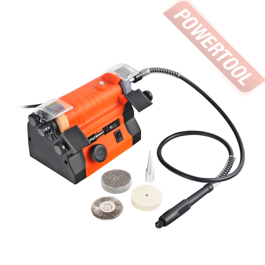 - Заточный круг из серого оксида алюминия и шлифовальная лента, для заточки инструмента.