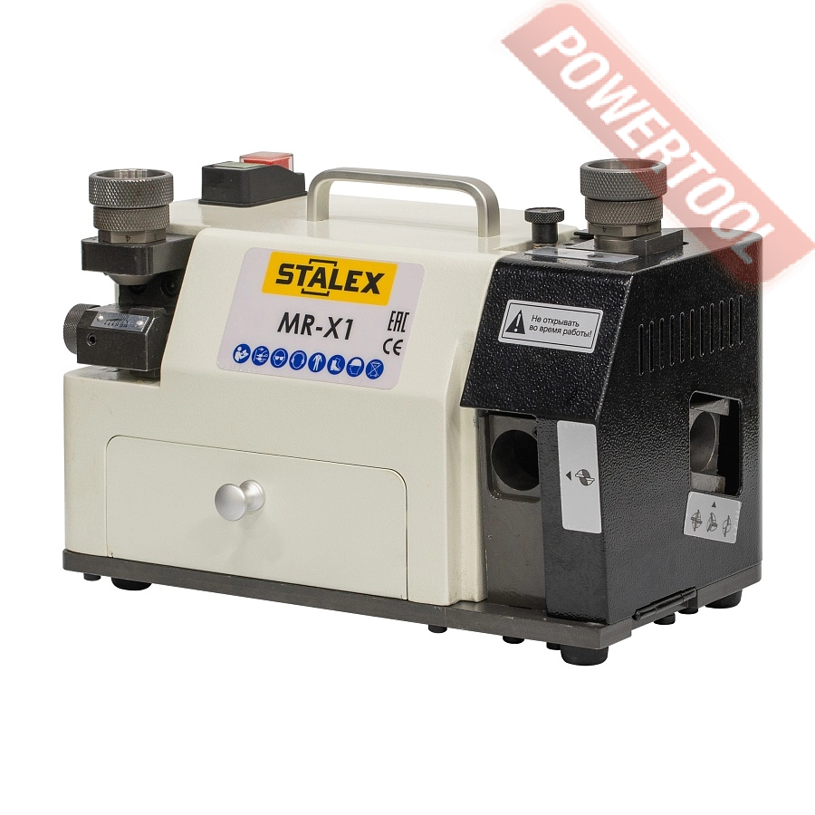 - Опорная пластина имеет две степени свободы, что позволяет затачивать инструменты под разными углами, а так же пластина имеет канавку для заточки сверл.