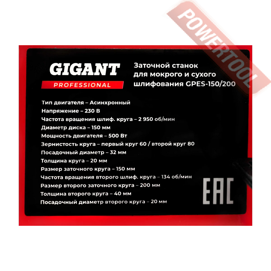 • 1. Заточной станок GIGANT Professional GPES-150/200.
