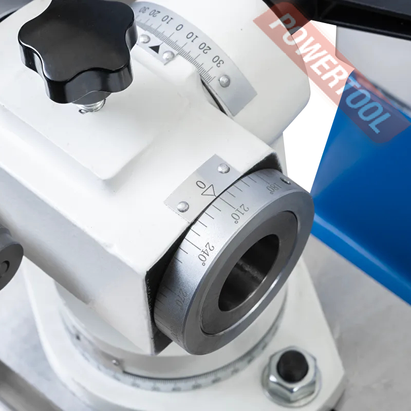 • Шлифовальный круг может вращаться на 360 градусов в горизонтальной плоскости и на 20 градусов вверх и 40 градусов вниз в вертикальной плоскости относительно горизонтальной оси.